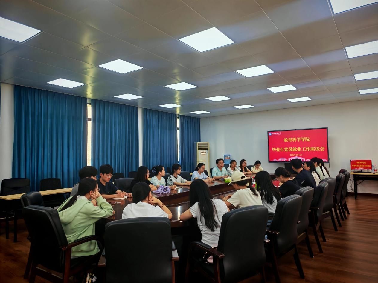 4月16日,教育科学学院召开2026届毕业生党员就业工作座谈会。学院党委书记王禄平、党委副书记邹同霞、毕业班辅导员及毕业生党员代表出席会议。