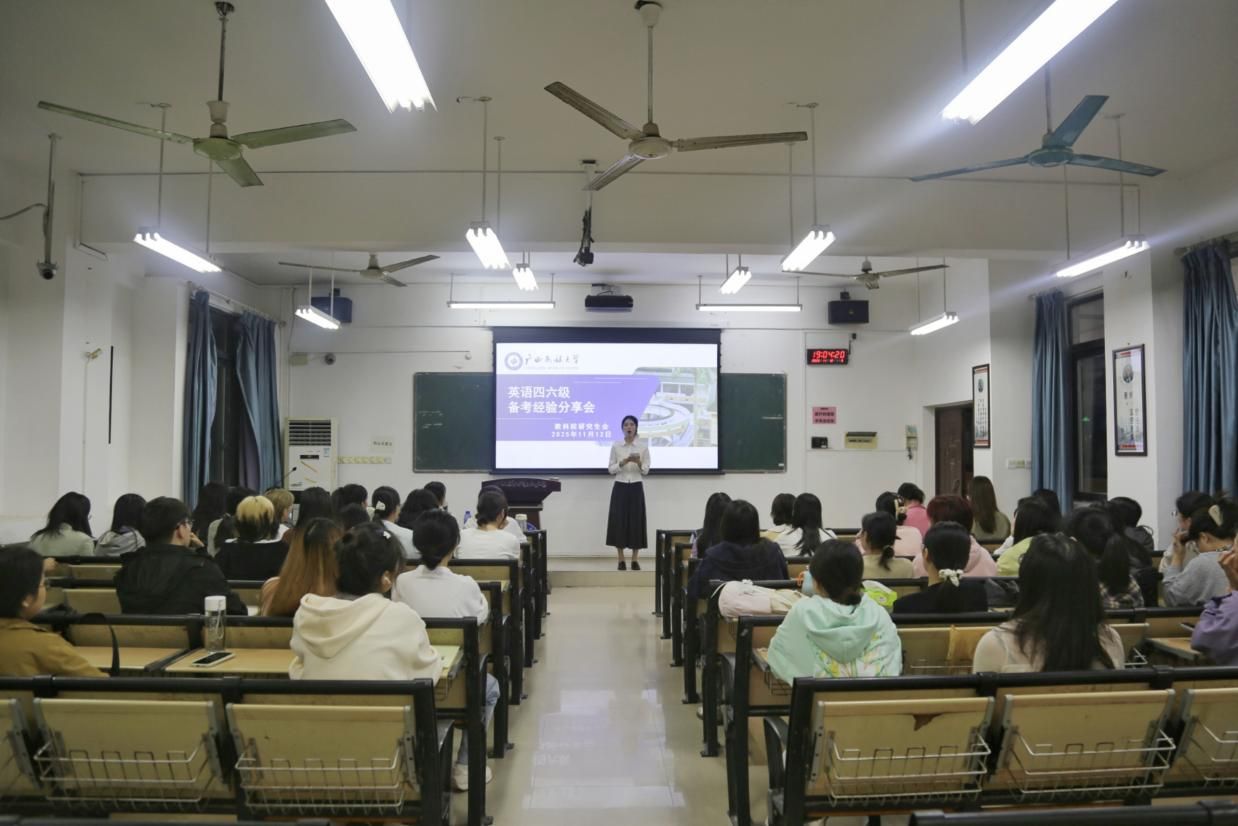为助力我院广大学生高效备考全国大学英语四六级考试,11月12日晚,教育科学学院研究生会于致远楼509室成功举办了“英语四六级备考经验分享会”。本次会议特意邀请了2024级教育管理专业学生邹昭昭与2025级教育管理专业学生张玥两位优秀学生代表作分享。