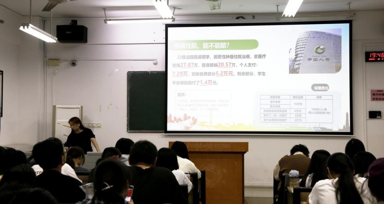 宣讲会上,保险公司宣讲人员围绕投保范围、保障内容、理赔流程等关键要点展开讲解。他们结合本校学生发生的意外、疾病实例,用通俗易懂的语言阐释政策细节,让同学们更直观地了解保险作用。同时,宣讲人员着重解答了同学们关注的报销比例、材料准备、异地就医等问题,引导同学们重视自身安全保障。