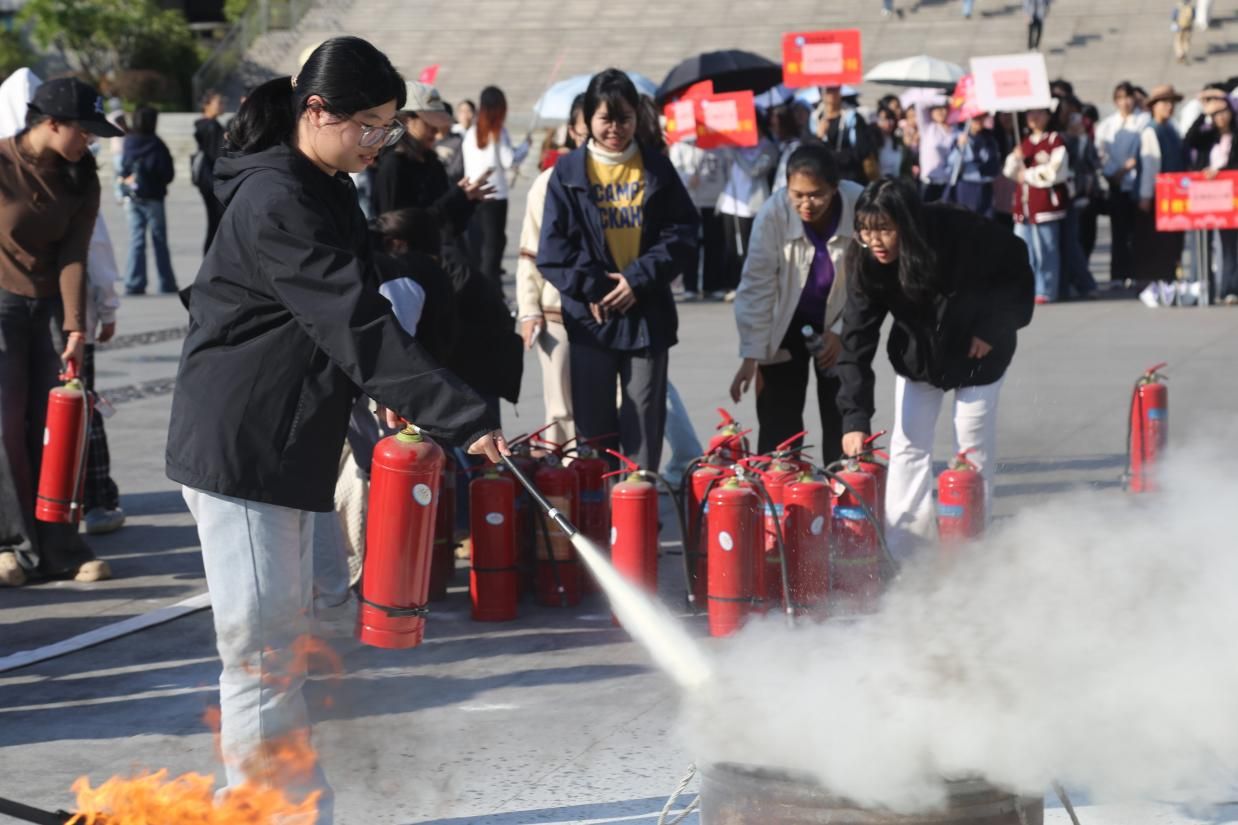 2025年11月25日下午,教育科学学院在思源湖校区图书馆前组织开展了消防安全演练活动。此次活动由学院党委副书记邹同霞老师带队,学院本科生和研究生共同参与。