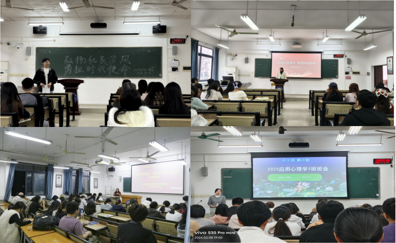 为强化学风建设、开展安全教育,护航新学期校园生活,2026年3月8日,教育科学学院以班级为单位,在致远楼各教室同步召开主题班会,学院全体学生参与学习。