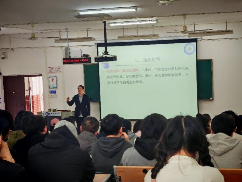 学院老师希望同学们以实习生身份进入实习学校时,能以教师标准严格要求自己,着装简洁得体,言行大方自然;进入实习学校后,要认真学习并做好记录,展现出积极的学习态度;与学生相处时,需保持适当距离,注意分寸。与此同时,在安全方面,老师从人身、财产、交通等角度提出要求,提醒同学们树立安全意识,妥善保管个人物品,尽量结伴出行,如遇突发情况需及时向实习学校或学院老师反馈。在纪律方面,老师特别叮嘱大家必须严格遵守实习学校的各项规章制度,请假需提前报备,坚决杜绝擅自离岗的行为。同时老师希望同学们在实习中始终保持积极心态。