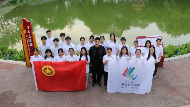 为缅怀革命先烈,弘扬伟大长征精神,2026年3月13日,教育科学学院团学组织于广西民族大学相思湖校区红色长征路开展“重走长征路”主题实践活动。学院团委书记陆宇扬老师带队,全体团学干部徒步穿越红色步道,循着革命先辈的足迹,在行走中感悟初心,在追忆中汲取力量。