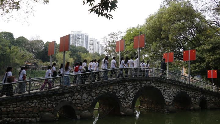 活动现场,参与者身着统一院服,高举院旗,沿着红军当年的路线砥砺前行。行进途中,陆宇扬老师化身红色讲解员,结合步道实景,生动讲述红船启航、长征征途等重大党史事件与感人革命故事。一段段波澜壮阔的热血征程,一件件催人泪下的革命往事,让在场成员深刻感悟到红色政权来之不易、革命胜利来之不易。