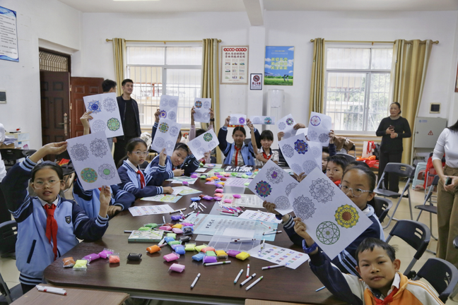 活动现场,志愿者们在与石埠社区居委会李媛书记沟通对接后,首先为大家分发了心理健康知识科普传单。随后,在志愿者的带领下,一系列趣味互动小游戏在小朋友们中依次开展。志愿者们全程陪伴在小朋友身边,耐心引导、亲密互动,让孩子们在轻松玩乐的氛围里了解心理小知识,在欢乐相伴的时光中向阳成长。