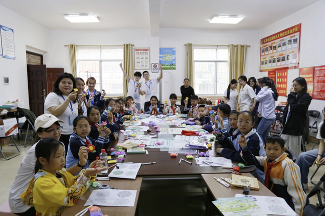 游戏收官,志愿者与鸿运小学学生定格美好瞬间