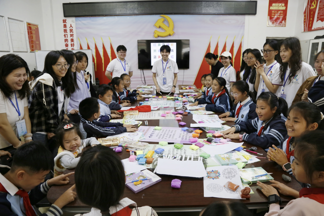 教育科学学院学生组织与小朋友们开展活动游戏